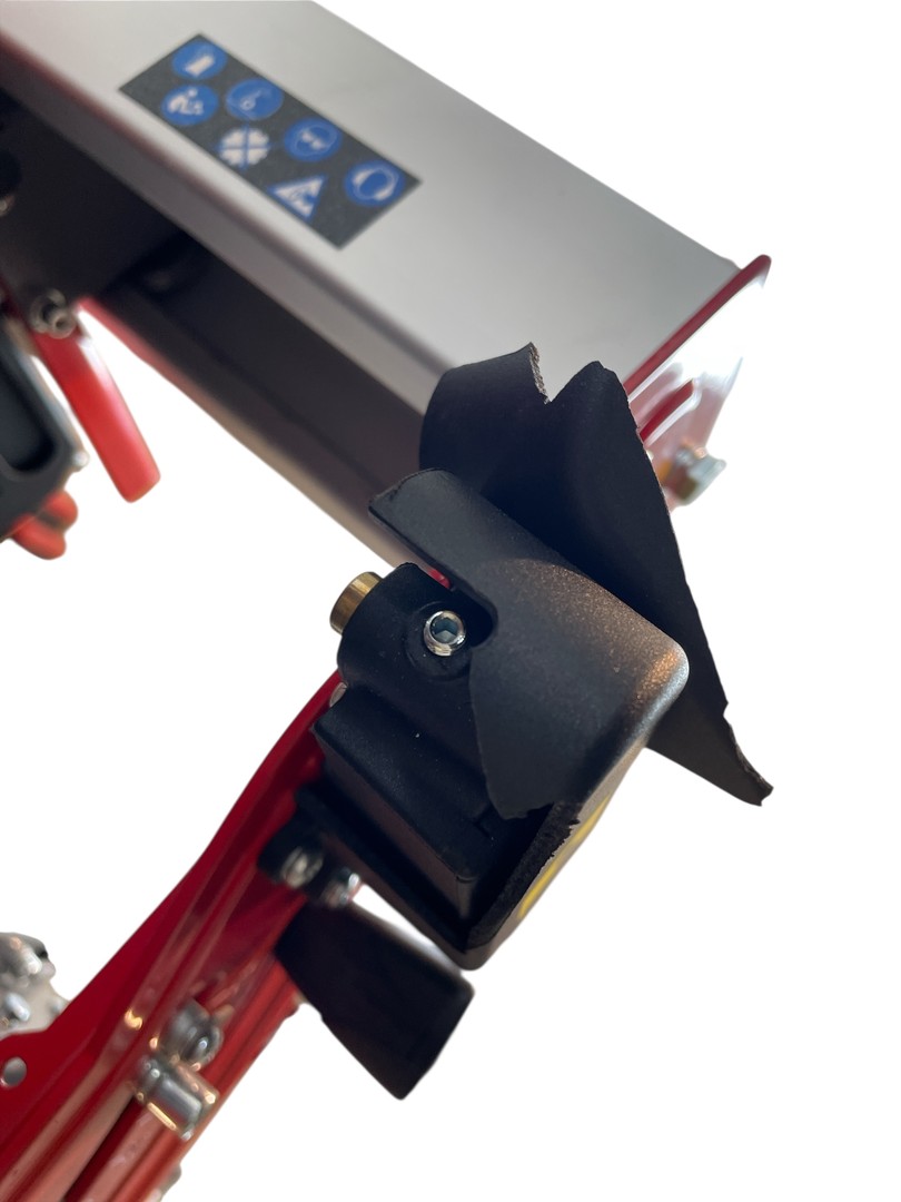 Noga z regulacją wysokości i kółka transportowe z uchwytem.